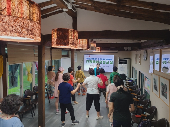 [오마이경주/경주시민신문=김경미기자] 경주시와 국민건강보험공단 경주지사가 함께하는 건강백세운동교실이 지난 11일 황오동 사랑채에서 개강했다.