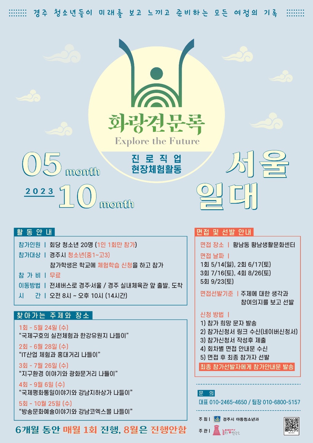 프로그램 운영기간 : 2023.05.24 ~ 2023.10.25 / 매회 20명씩 선발 현장체험활동
