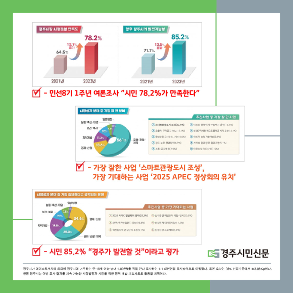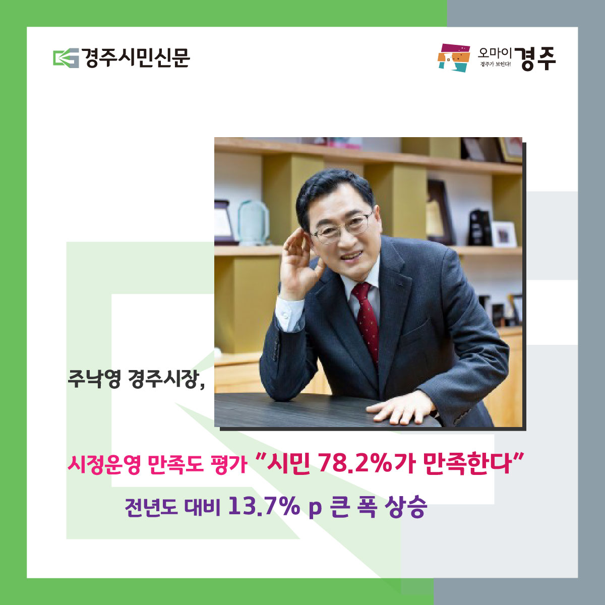 시정운영 만족도 평가 ˝시민 78.2%가 만족한다˝ 전년도 대비 13.7% p 큰 폭 상승