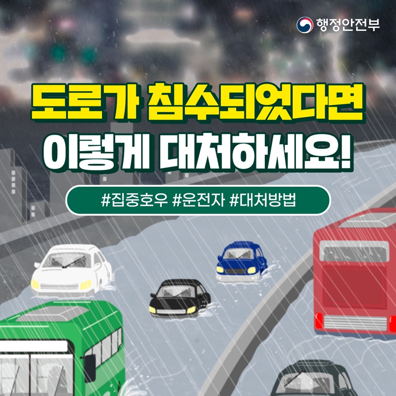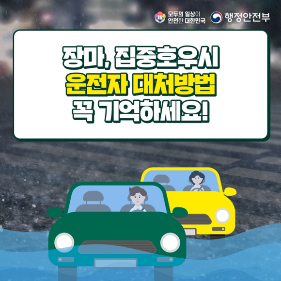 장마, 집중호우시 운전자 대처방법을 곡 기억하세요!