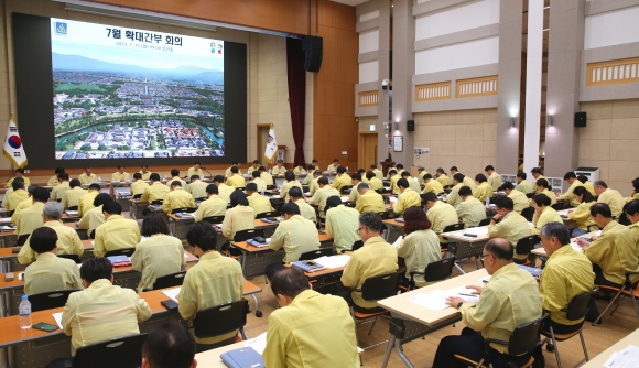 [오마이경주/경주시민신문=김경미기자] 주낙영 경주시장은 17일 오전 시청 알천홀에서 확대간부회의를 주재하고 시민운동장 이전 건립 계획, 화랑대기 전국 유소년 축구대회 준비 상황 등 경주시가 하반기 추진할 중점사업을 점검했다.