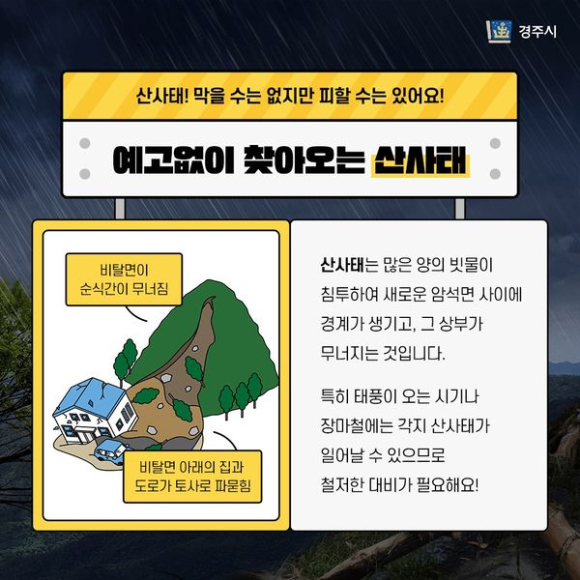 - 예고없이 순식간에 일어나는 산사태막을 수는 없지만 피할 수는 있습니다!