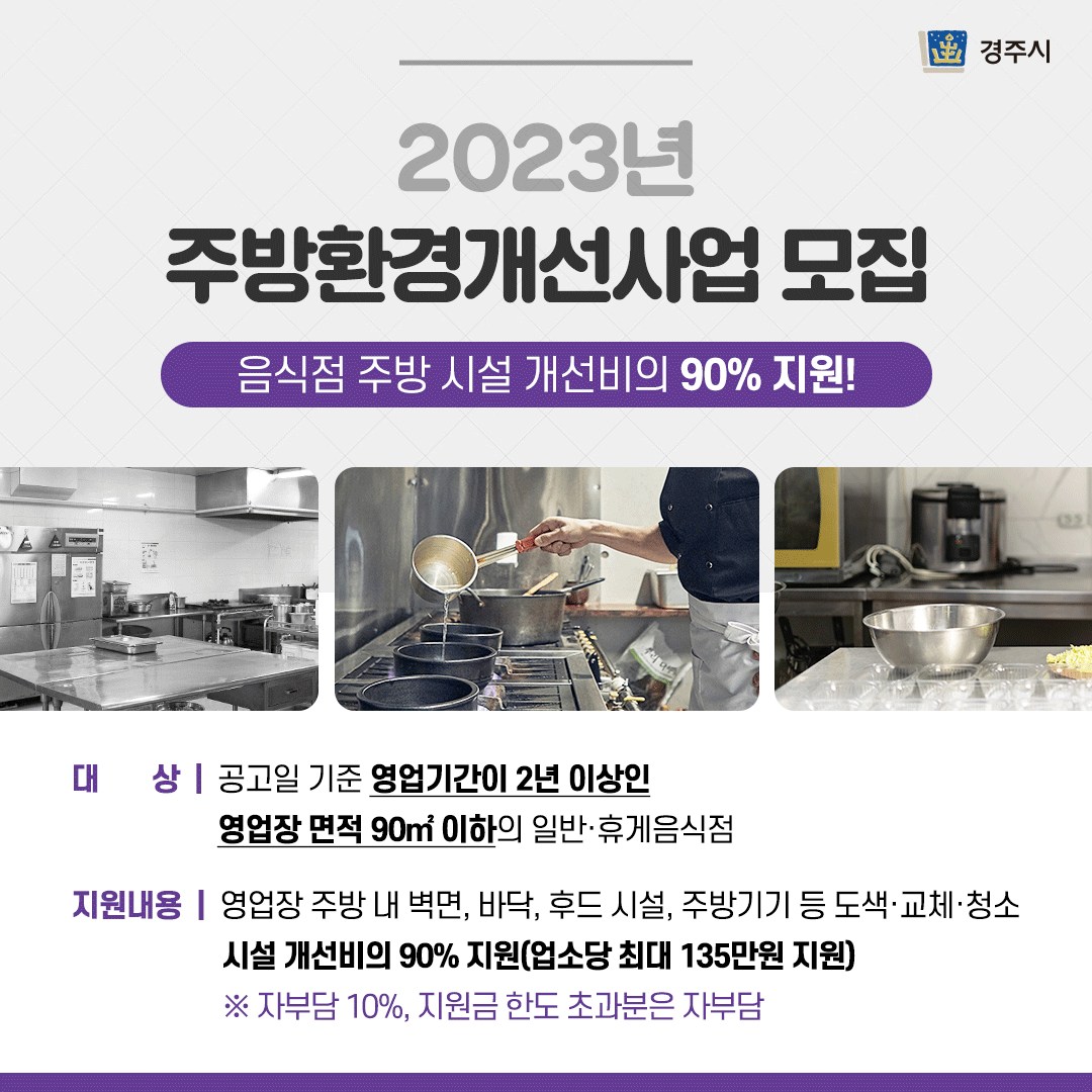 음식점 주방 시설 개선비의 90% 지원 받아가세요~!