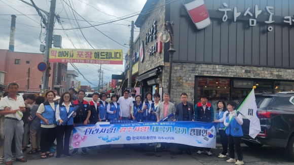 [오마이경주/경주시민신문=김경미기자] 한국자유총연맹 경주시지회는 제75주년 제헌절을 맞이해 지난 14일 안강읍 일원에서 ‘나라사랑! 경주사랑! 태극기 달기’ 캠페인을 실시했다.