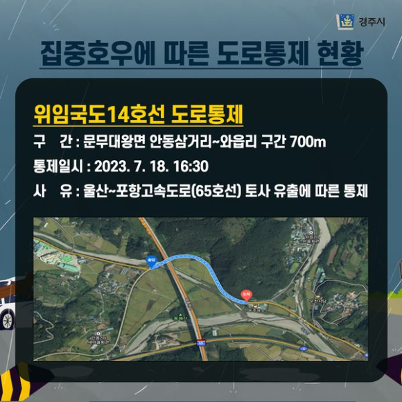 사유 : 울산~포항고속도로(65호선) 토사 유출에 따른 통제