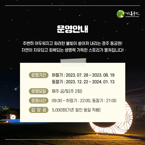자연이 치유되고 회복되는 생명력 가득한 스토리를 담은 미디어쇼와 야간개장의 꽃, 다양한 빛의 조형물을 만나보세요!!