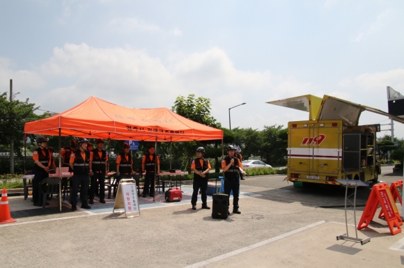 [오마이경주/경주시민신문=김경미기자] 경주소방서는 20일(목) 서편주차장에서 7월 정기인사에 따른 긴급구조통제단 기능숙달 훈련을 실시했다.
