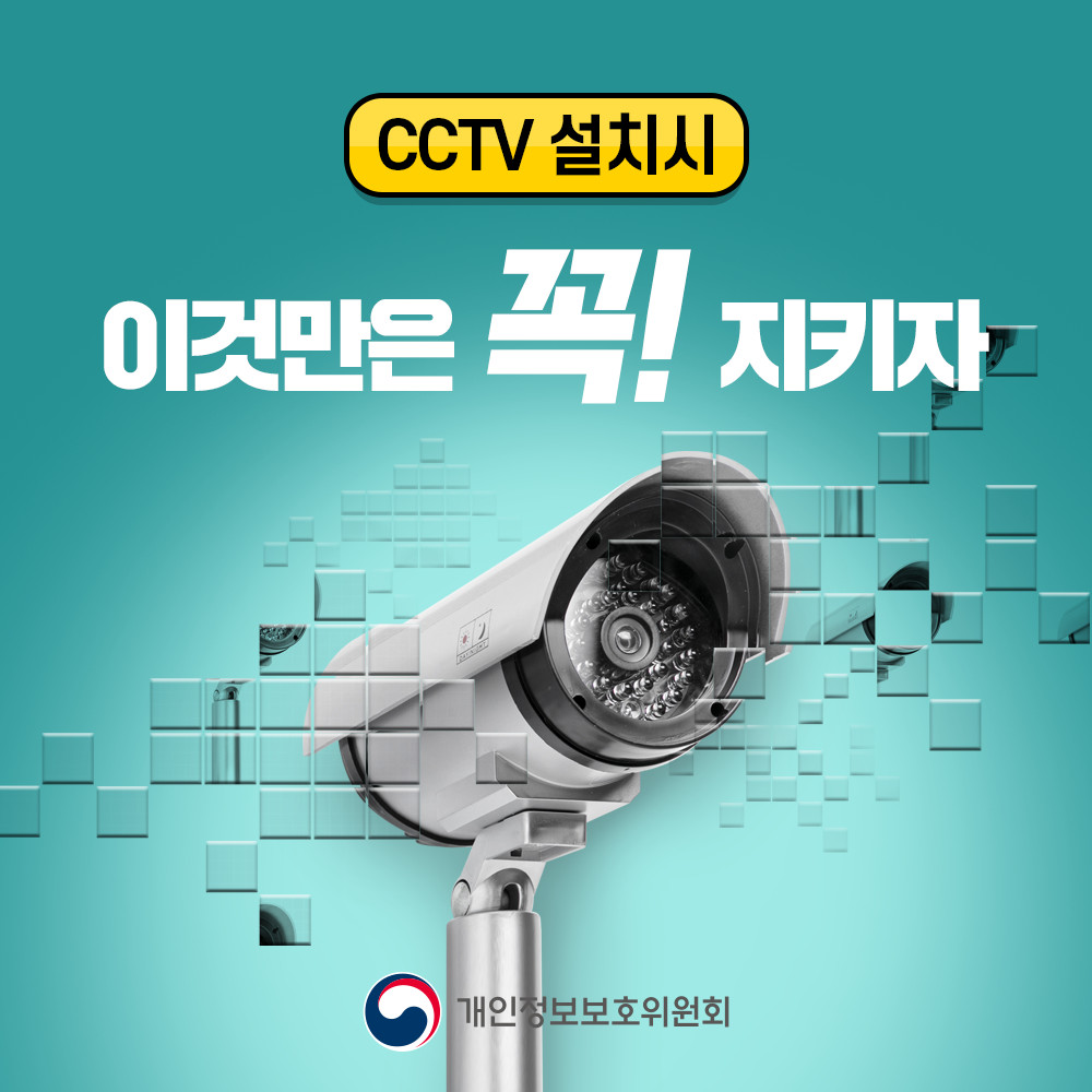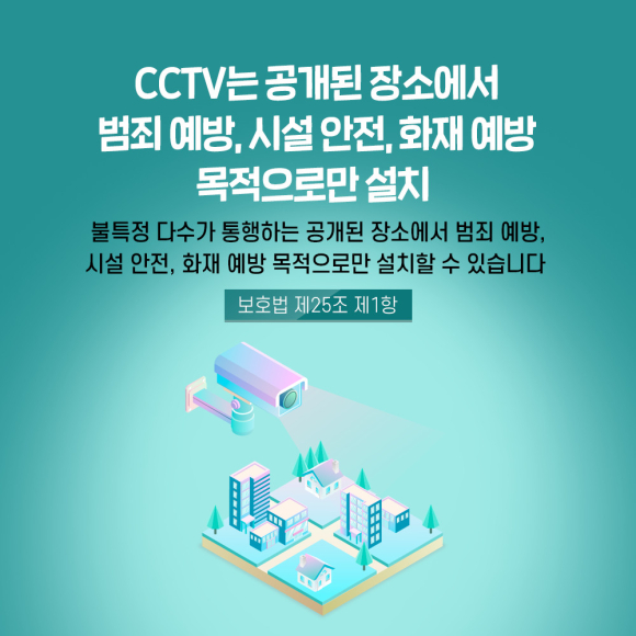 - CCTV는 공개된 장소에서 범죄예방, 시설안전, 화재예방 목적으로만 설치
