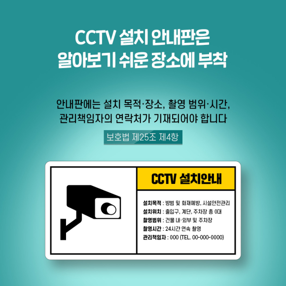 - CCTV 설치 안내판은 알아보기 쉬운 장소에 부착