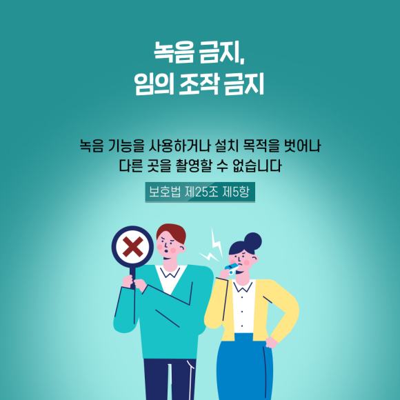- 탈의실, 화장실, 목욕실등 사생활 침해장소에 CCTV 설치 절대 금지