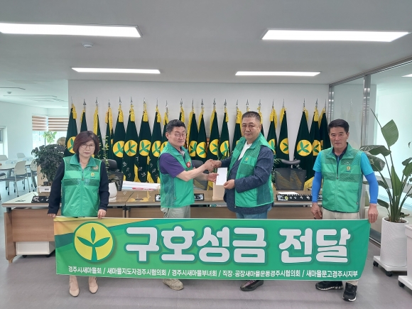 [오마이경주/경주시민신문=김경미기자] 경주시새마을회(회장 손지익), 새마을지도자경주시협의회(회장 박정원), 경주시새마을부녀회(회장 정명숙), 직공장 새마을운동경주시협의회(회장 장영준) 새마을문고중앙회 경주시지부(회장 조강식)는 21일(금) 지난 주말 극심한 폭우로 수해 피해를 입은 경북 문경, 예천, 영주, 봉화 4개시군을 방문하여 수해지역 피해 복구와 수재민을 돕기 위해 4개 시군 새마을회에 총 성금 400만원을 기탁했다.