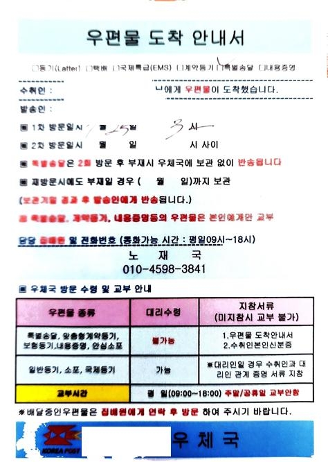 [오마이경주/경주시민신문=김경미기자] 경주경찰서는 경주지역에 우체국 도착 안내서를 위조한 보이스피싱 의심신고사건이 접수되어 수사 중에 있다고 밝혔다.