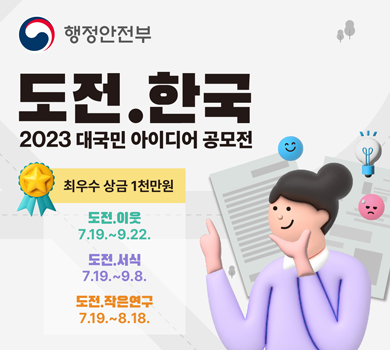 생활 속 크고 작은 사회문제를 직접 해결할 수 있는 아이디어 공모에 국민여러분의 많은 관심과 참여 바랍니다.