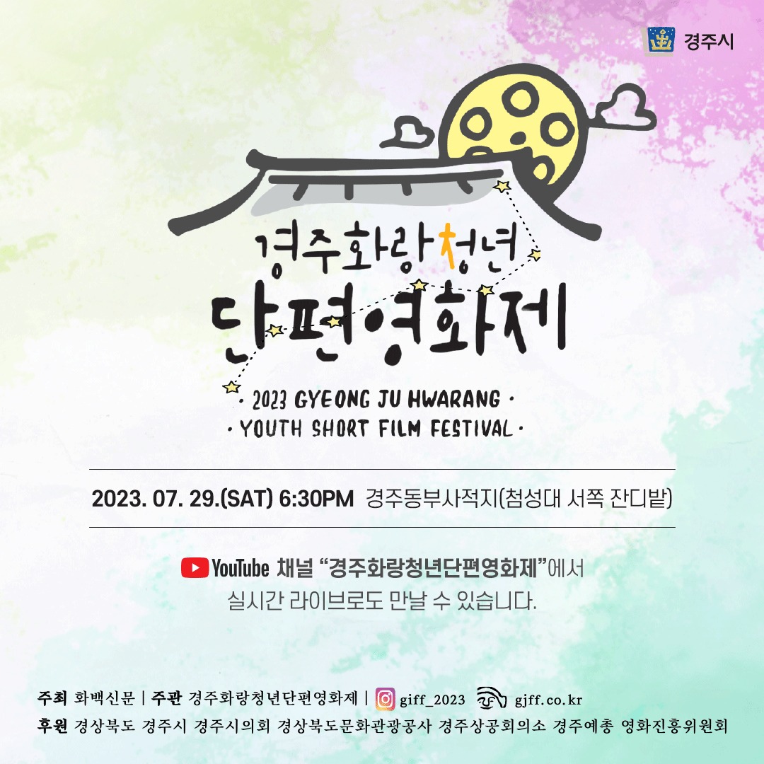 개막작 "시대의 초인, 범부 김정설"을 시작으로!<경주화랑청년단편영화제>공모전 수상작부터! 축하공연까지!영화 축제의 현장으로 여러분을 초대합니다유튜브 채널 “경주화랑청년단편영화제”에서 실시간 라이브로도 만날 수 있습니다