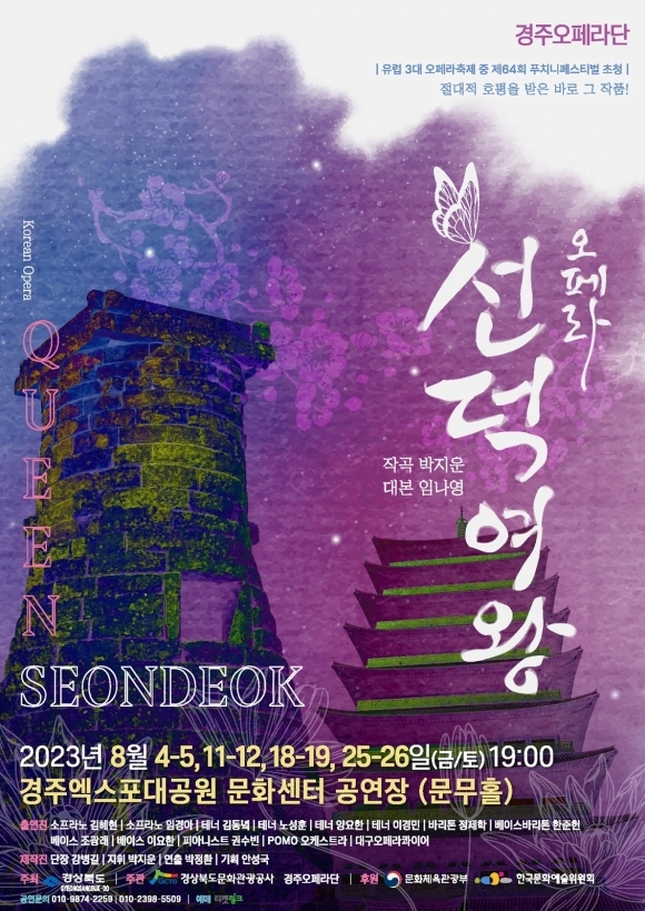 한편, 오페라 ‘선덕여왕’은 2011년 포항오페라단, 대구아양센터, 아미치 앙상블이 공동으로 제작해 대구와 포항에서 처음 공연됐다. 2017년에는 이탈리아 토레델라고에서 열린 푸치니페스티벌에 초청돼 호평을 받았으며, 지난 6월에는 포항오페라단 주관으로 경북도청 동락관에서 공연을 선보였다.