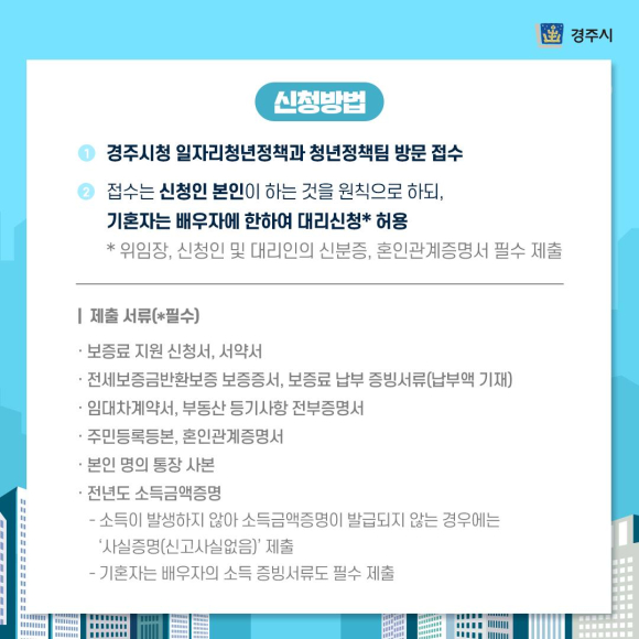 -신청방법 : 경주시청 일자리청년정책과 청년정책팀 방문 접수