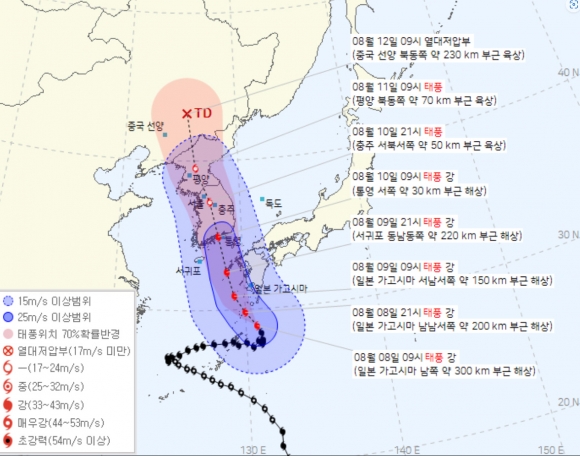 | ↑↑ 기상청 제공 태풍 상황도(8일 오전 10시 기준) |