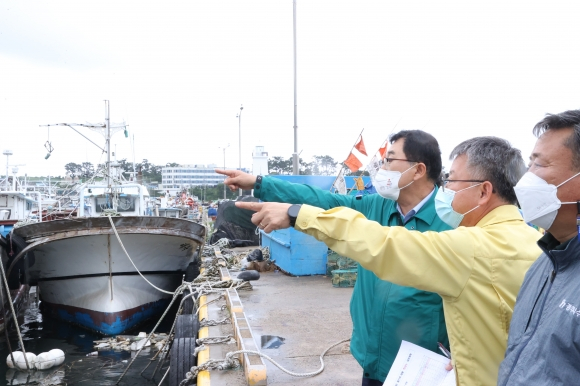 강풍 피해를 대비해 415척 어선 육상 인양 및 피항 조치와 비닐하우스, 축사, 과수 시설 등에 대해 고정‧결박 조치한다. 또 불법 현수막, 그늘막은 물론 옥상. 돌출간판에 대해서도 정비. 결박한다.