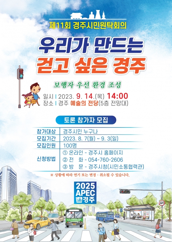 이번 경주시민원탁회의는 보행친화도시에 관심 있는 경주시민이면 누구나 참여할 수 있다.