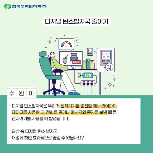 '디지털 탄소발자국'줄이고 환경 보호, 에너지 절약 실천해요!