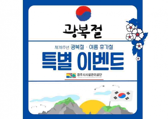 [오마이경주/경주시민신문=김경미기자] 경주시시설관리공단(이사장 정태룡)은 “8월 광복절 및 여름 휴가철”을 맞이하여 대한민국 국민의 자긍심 및 나라 사랑의 의미를 되새기고 역대 최고 무더위 속에 여름 방학을 맞아 경주를 찾는 관광객들을 위해 오는 13일 ~ 15일(3일간) 공영주차장 이용 고객을 대상으로 감사 이벤트를 실시한다고 밝혔다.