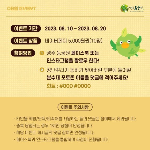 1. 경주 동궁원 페이스북 또는 인스타그램을 팔로우 한다!