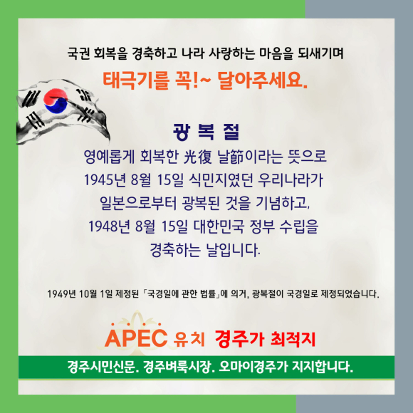 국권 회복을 경축하고 나라 사랑하는 마음을 되새기며