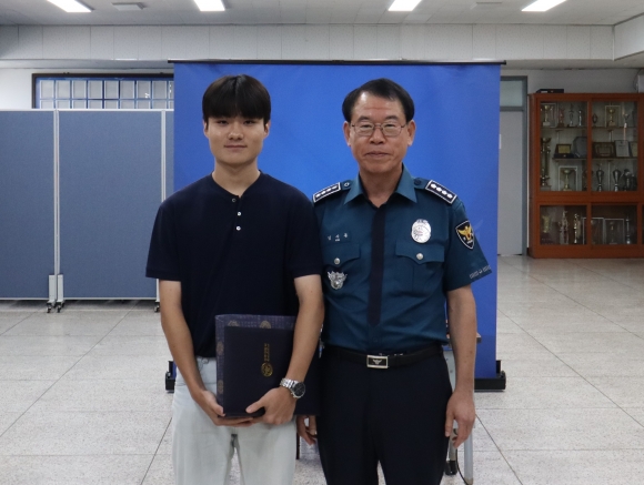 [오마이경주/경주시민신문=김경미기자] 경주경찰서는 지난 5일 오후 5사쯤 산내 제2의곡교 아래 물에 빠져 심정지 상태인 익수자(남, 68세)를 구한 계명문화대학교 경찰행정과 학생 A씨(남, 20세)에게 14일 오전 9시 30분 표창장을 수여했다.