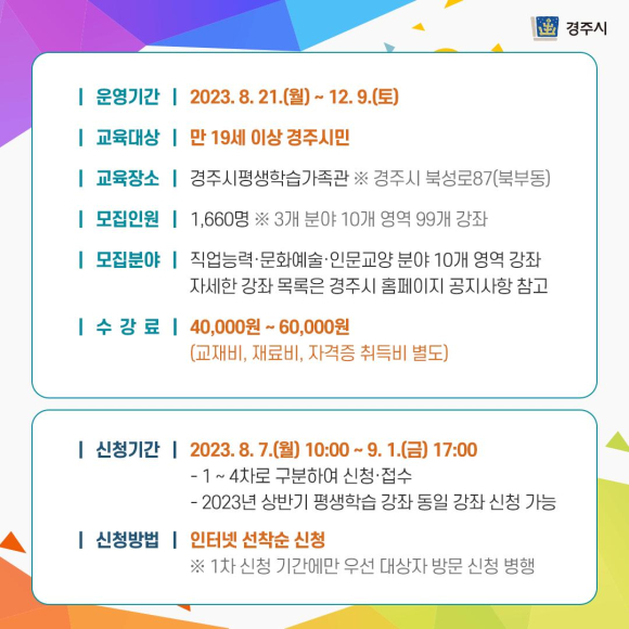 - 교육대상 : 만 19세 이상 경주시민