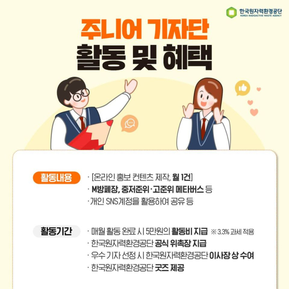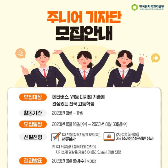 2023 한국원자력환경공단 '주니어 기자단' 모집
