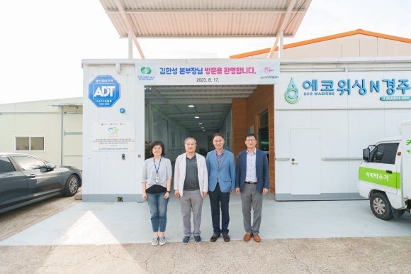 ‘에코워싱N경주’는 월성원자력본부가 사업자지원사업비 2억원을 지원한 다회용기 수거, 세척. 포장, 배송 사업장으로 지난 7월 개소하여 취약계층 18명의 일자리를 창출했다. 뿐만아니라 다회용기 사용을 통한 자원 및 폐기물 비용 절감 등 탄소중립 실천을 위해 커피숍, 장례식장 등에 다회용기를 직접 생산하는 사업도 진행하고 있어 일자리 창출을 확대해 나갈 계획이다.