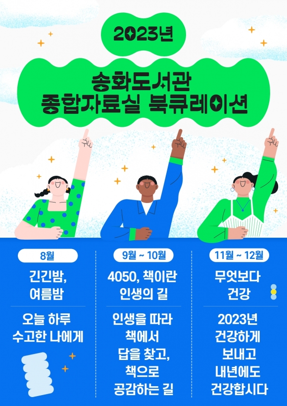 8월 북큐레이션은 여름밤 책과 함께 하루를 마무리한다는 내용으로 ‘긴긴밤, 여름밤’, 9월에서 10월 북큐레이션은 중장년층을 위한 이야기로 ‘4050, 책이란 인생의 길’ 주제로 진행된다.