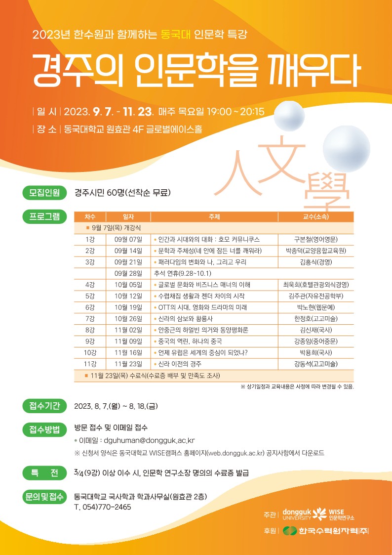 2023년 한수원과 함께하는 동국대 인문학 특강
