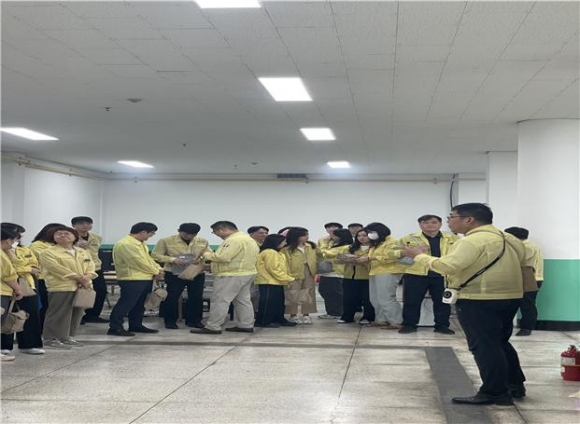 [오마이경주/경주시민신문=김경미기자] 경상북도 경주교육지원청(교육장 권대훈)은 23일 오후 2시부터 전 직원이 참석한 가운데 을지연습 실제 훈련과 연계한 민방공 대피 훈련을 실시했다.
