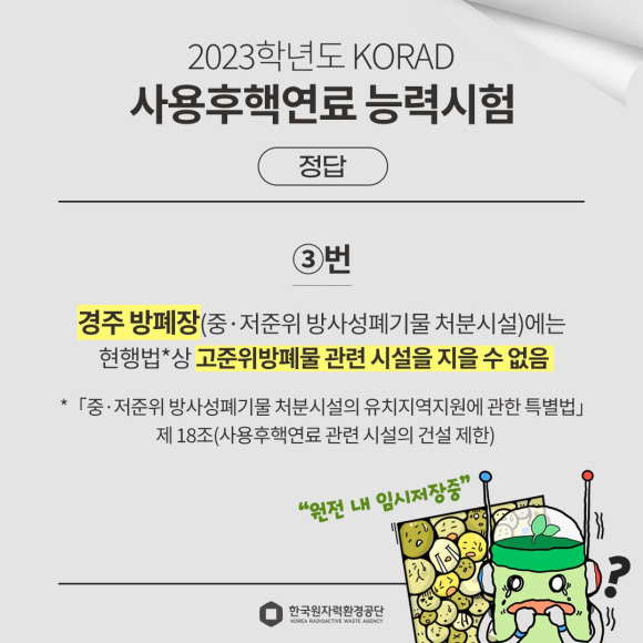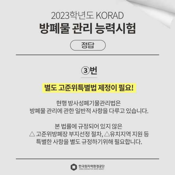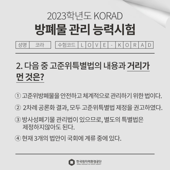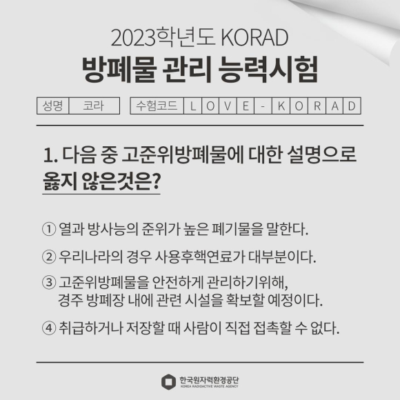 2023 KORAD 방폐물 관리 능력시험 고준위방폐물!