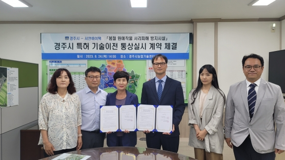 시는 지난 24일 농업기술센터에서 ‘노지 과수의 서리 방지 장치’ 기술이전 통상실시 계약을 서연바이텍과 체결했다. 실시기간은 2024년부터 2028년까지 5년간이다.