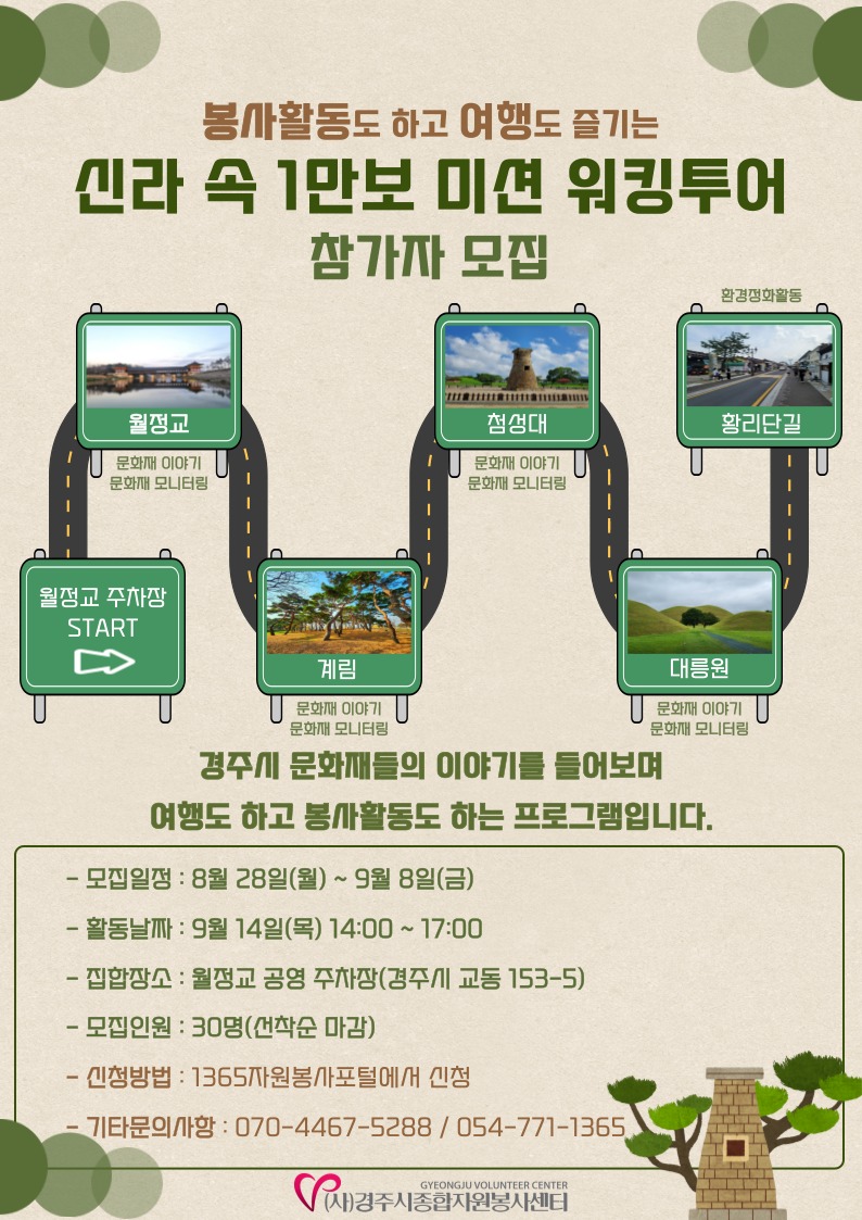 - 봉사요소 : 문화재모니터링활동, 황리단길 일대 환경정화활동(2시간)