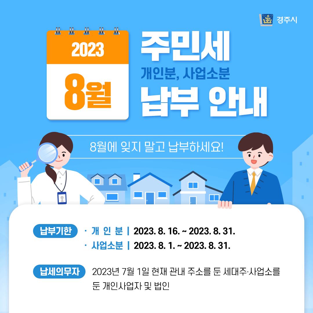 8월은 주민세(개인분, 사업소분) 납부의 달