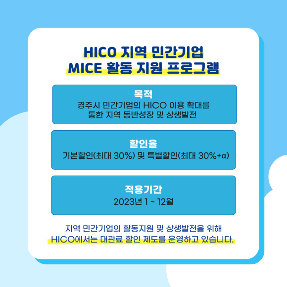 경주시 민간기업 대상 HICO 대관료 할인안내