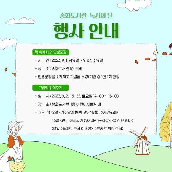 낭만이 가득한 가을날 송화도서관으로 당신을 초대합니다~