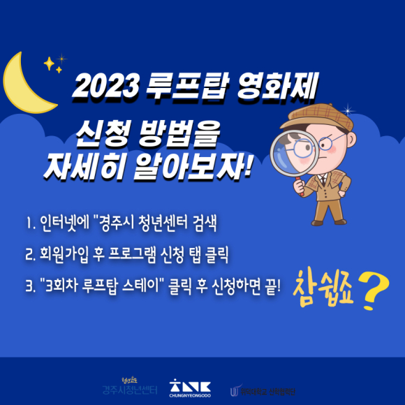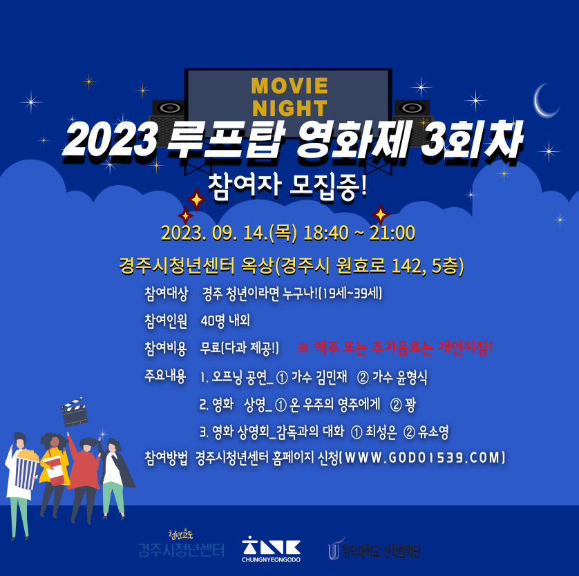 - 신청 방법 : 경주시청년센터 홈페이지 > 루프탑영화제 신청하기