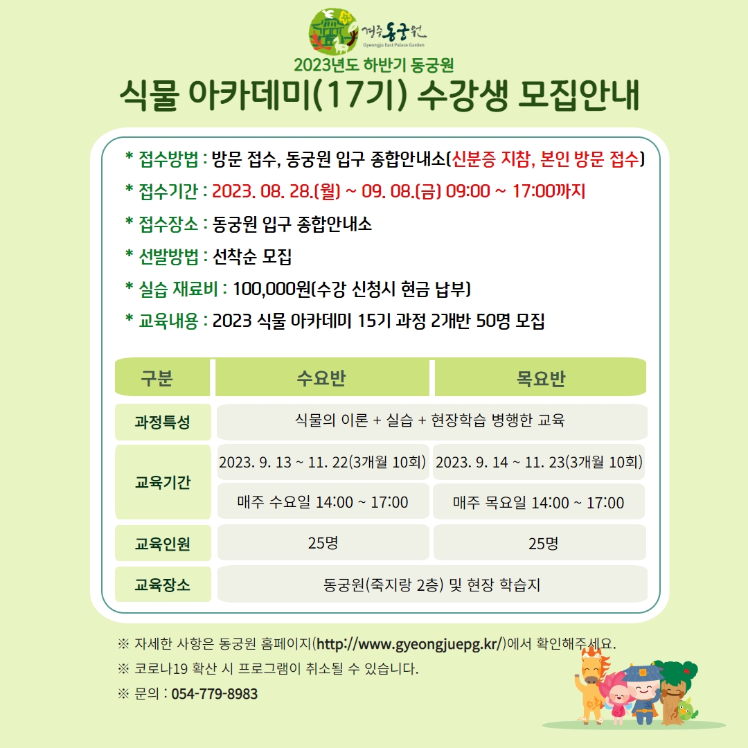 식물 아카데미 수요반, 목요반 25명씩 수강생 모집 안내