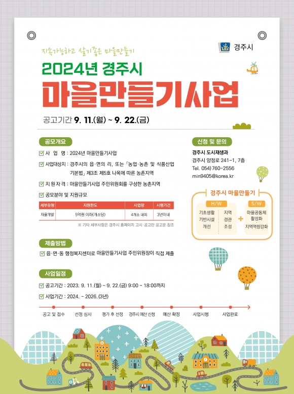 [오마이경주/경주시민신문=김경미기자] 경주시가 ‘2024년 경주시 마을 만들기 사업’에 참여할 마을을 모집한다.