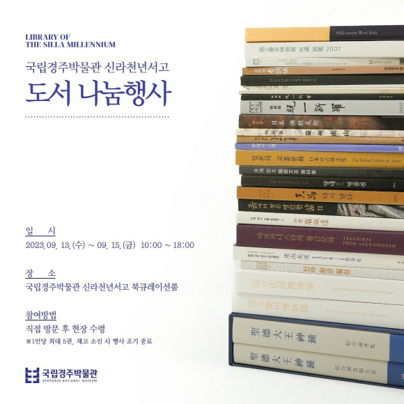 국립경주박물관 신라천년서고에서 도서 나눔행사를 진행합니다.