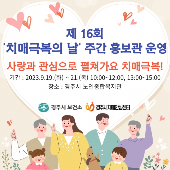 최재순 경주시 보건소장은 “제16회 치매극복의 날 주간 홍보관 운영을 통해 치매와 함께 살아갈 수 있는 사회적 공감대를 형성하고 치매 친화적 환경 조성에 앞장서겠다”고 말했다.