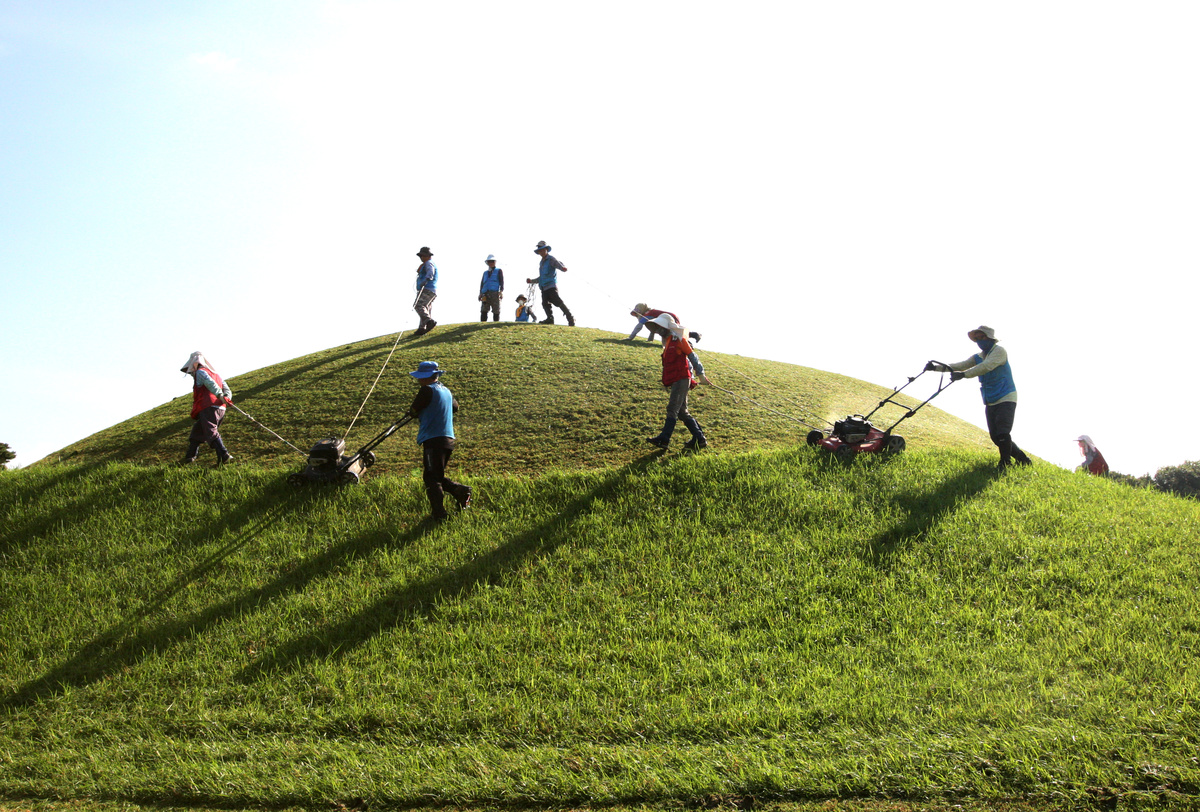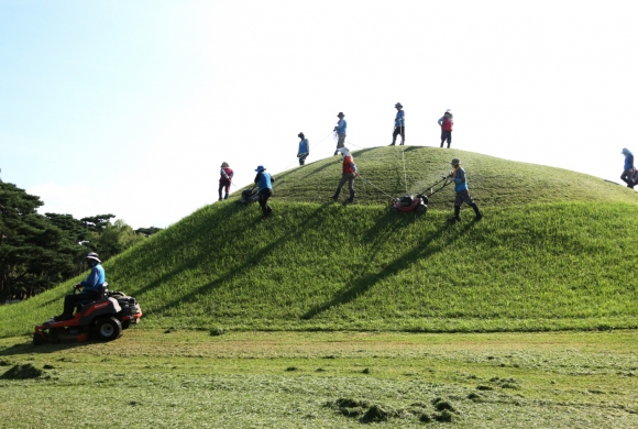 [오마이경주/경주시민신문기자] 경주시 사적관리팀은 19일 공공근로자들과 탑동에 있는 신라왕릉인 오릉에서 벌초하고 있다.