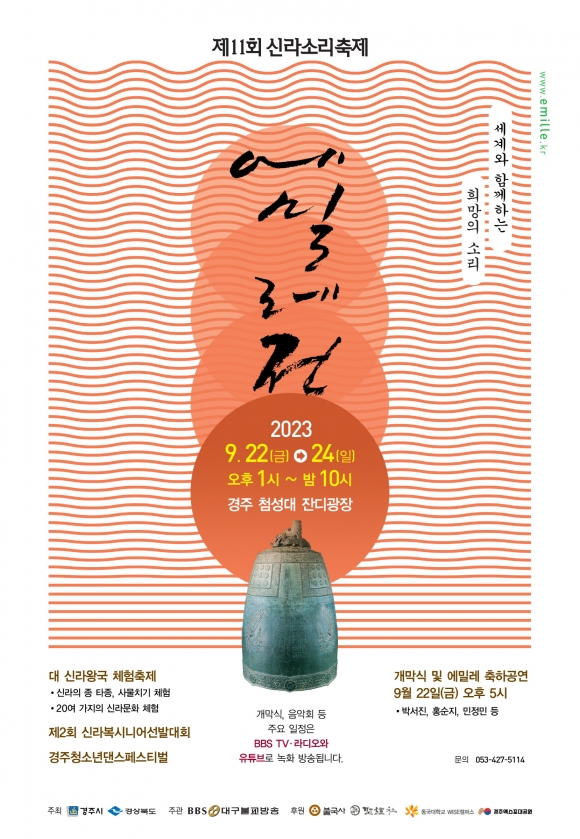 올해 11회를 맞는 ‘에밀레전’은 ‘세계와 함께하는 희망의 소리’를 주제로 우수한 전통문화와 수준 높은 공연으로 시민들에게 아름다운 선율을 선사한다.