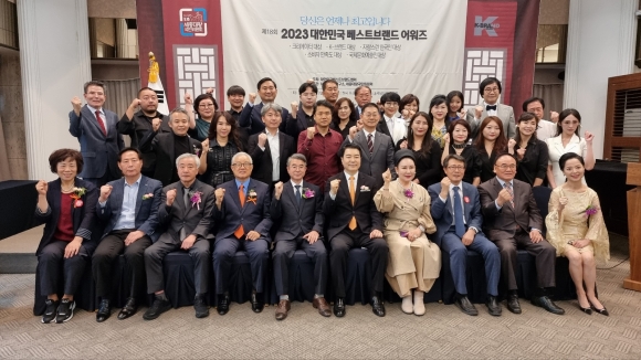 | ↑↑ 김성학 경주시부시장(오른쪽 세번째) 2023 K-브랜드협회 주관 대상 수상자들과 기념촬영을 하고 있다. |