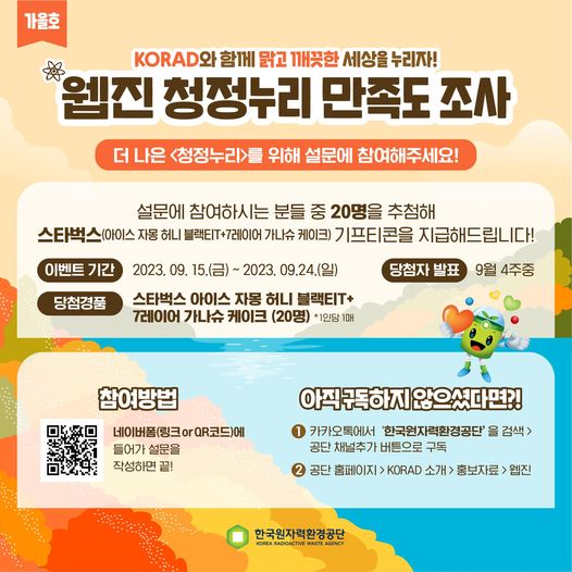 [한국원자력환경공단 웹진 청정누리 가을호 만족도 조사 이벤트]