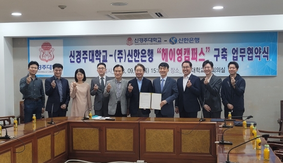 [오마이경주/경주시민신문=김경미기자] 신경주대학교(총장 김일윤)는 2023년 9월 21일 오후 3시 신한은행(은행장 정상혁)과 ‘헤이영 캠퍼스’ 구축을 위한 업무협약을 체결했다.